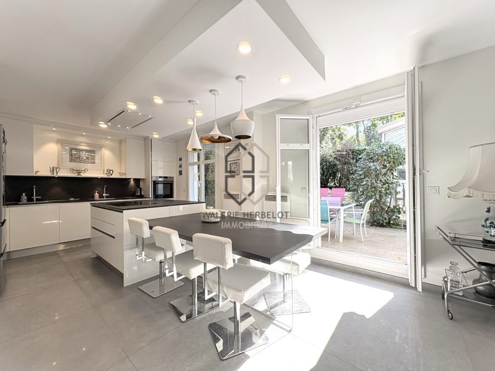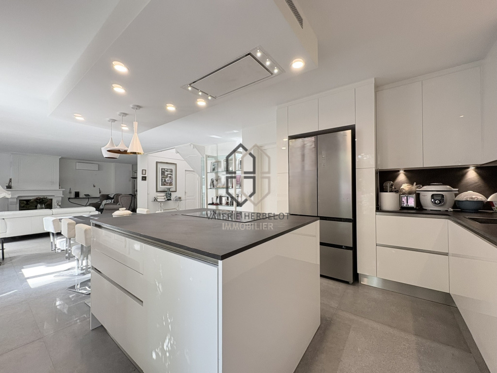 Maison contemporaine de 160 m² habitables et 200 m² utiles parfait état dans le quartier du vieux village, trés verdoyant et calme proche des commerces et écoles. Elle se compose au rez-de-chaussée d'une belle entrée cathédrale, d'un grand séjour (triple) très lumineux avec sa cheminée , une cuisine américaine équipée ouvrant sur terrasses , il y a la possibilité de créer une suite au rez de chaussée, WC séparé. À l'étage une mezzanine dessert une suite parentale avec sa salle de bains, dressing, une seconde suite avec dressing, une troisième chambres, une salle d'eau avec wc et un WC séparé.Le jardin est arboré, avec une jardinerie, de la maison vous pouvez accéder directement à la piscine couverte chauffée (10x4) un grand garage et la possibilité de se garer facilement devant la maison sur des places reservées. Le bonheur en famille vous y attend !