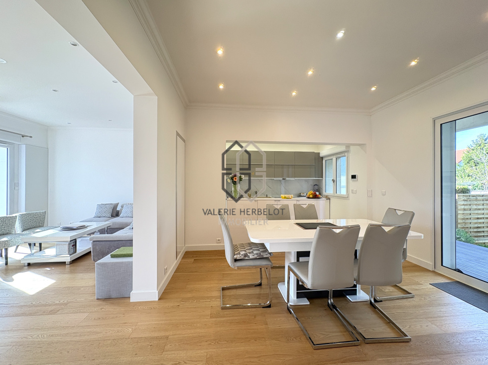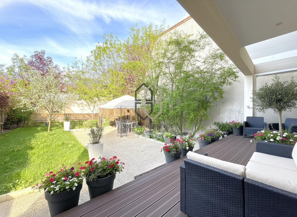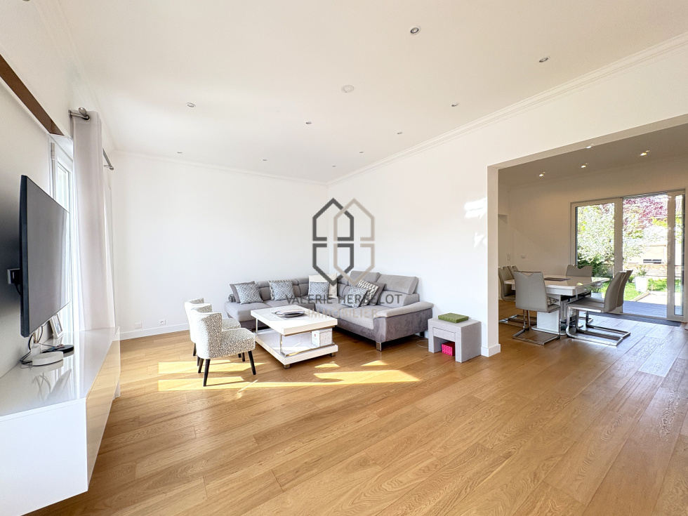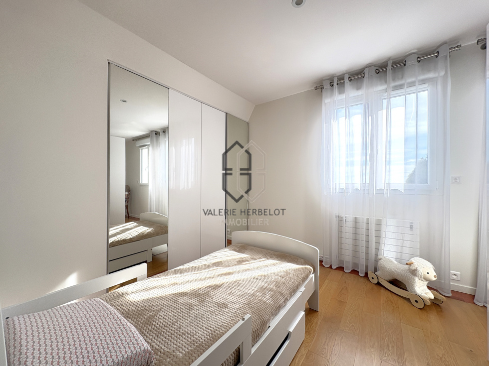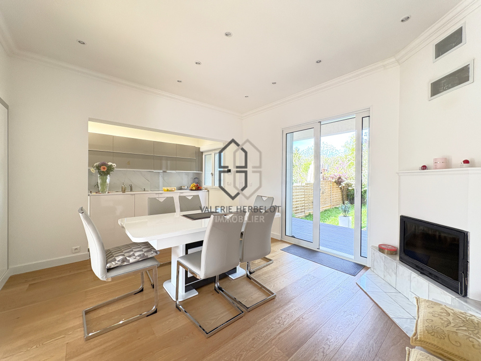Jolie maison entièrement rénovée en 2013 au cœur de Chennevières-sur-Marne, parfaitement fonctionnelle elle vous accueille par une entrée avec rangement sur mesure, un espace idéal pour une profession libérale avec un bureau, une chambre d'invité, wc, buanderie, garage. A l'étage de belles prestations contemporaines vous attendent : un lumineux salon ouvrant sur balcon avec vue dégagée sur Paris, vaste espace de vie complété par une cuisine américaine ouverte sur salle à manger et terrasse. A l'étage une belle suite parentale avec dressing sur mesure, salle de bain, wc et balcon, 2 chambres avec rangments intégrés et salle d'eau. Le jardin de 332 m², est un véritable havre de paix, calme, ensoleilé, et sans vis à vis propice à la détente et aux moments conviviaux en plein air. Implantée dans un quartier calme et sécurisé, cette maison bénéficie d'une proximité immédiate avec les commodités facilitant votre quotidien : RER A à 1.8 km, accessible facielement avec 3 bus à proximité, creche, écoles maternelle et primaire, petit centre commercial, boulangerie, phamacie dans un rayon de moins de 10 minutes à pied.